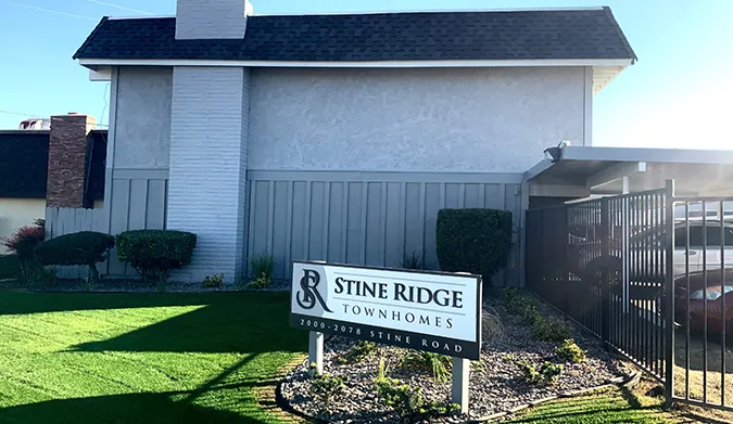 The Stine Ridge townhomes are a newly updated 40 unit complex in the city of Bakersfield. The complex includes a mix of two and three bedroom units and are located on a large lot with plenty of curb appeal. The complex offers beautifully landscaped grounds in a garden-style setting, and a centrally located common area that include a BBQ, patio seating and children’s play area for residents to enjoy. There is assigned covered parking available for tenants and a newly remodeled laundry facility. Other amenities include air conditioning, spacious floor plans and open kitchens with newer counter tops, sinks, faucets, flooring and private patios. Stine Ridge Townhomes reside in an ideal Bakersfield location with a wide variety of activities, transportation, freeway access, retail, and educational and employment opportunities.